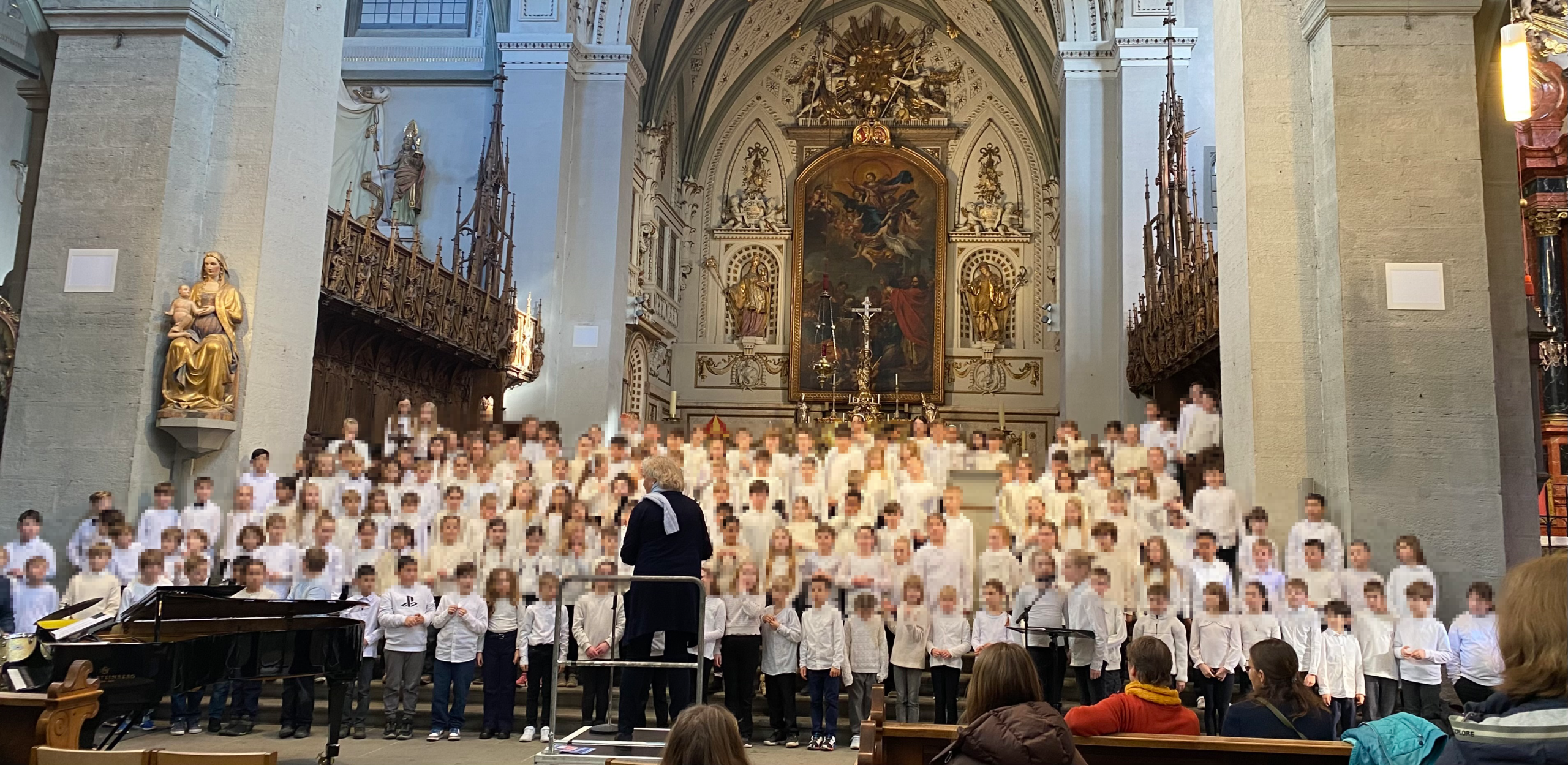 Zusammen mit neun anderen Grundschulklassen aus Konstanz nahm unsere Klasse 4a an einer ganz besonderen Projektwoche teil. In vier Tagen studierte die Gesangspädagogin Friedhilde Trüün mit den Kindern zwölf Musikstücke von Johann Sebastian Bach ein. So entstand ein Chor von 200 Kindern. Diese zeitweise durchaus anstrengende Erarbeitung mündete dann am Freitagabend in ein beeindruckendes Konzert im vollbesetzten Münster – ein unvergessliches Erlebnis für die Kinder!